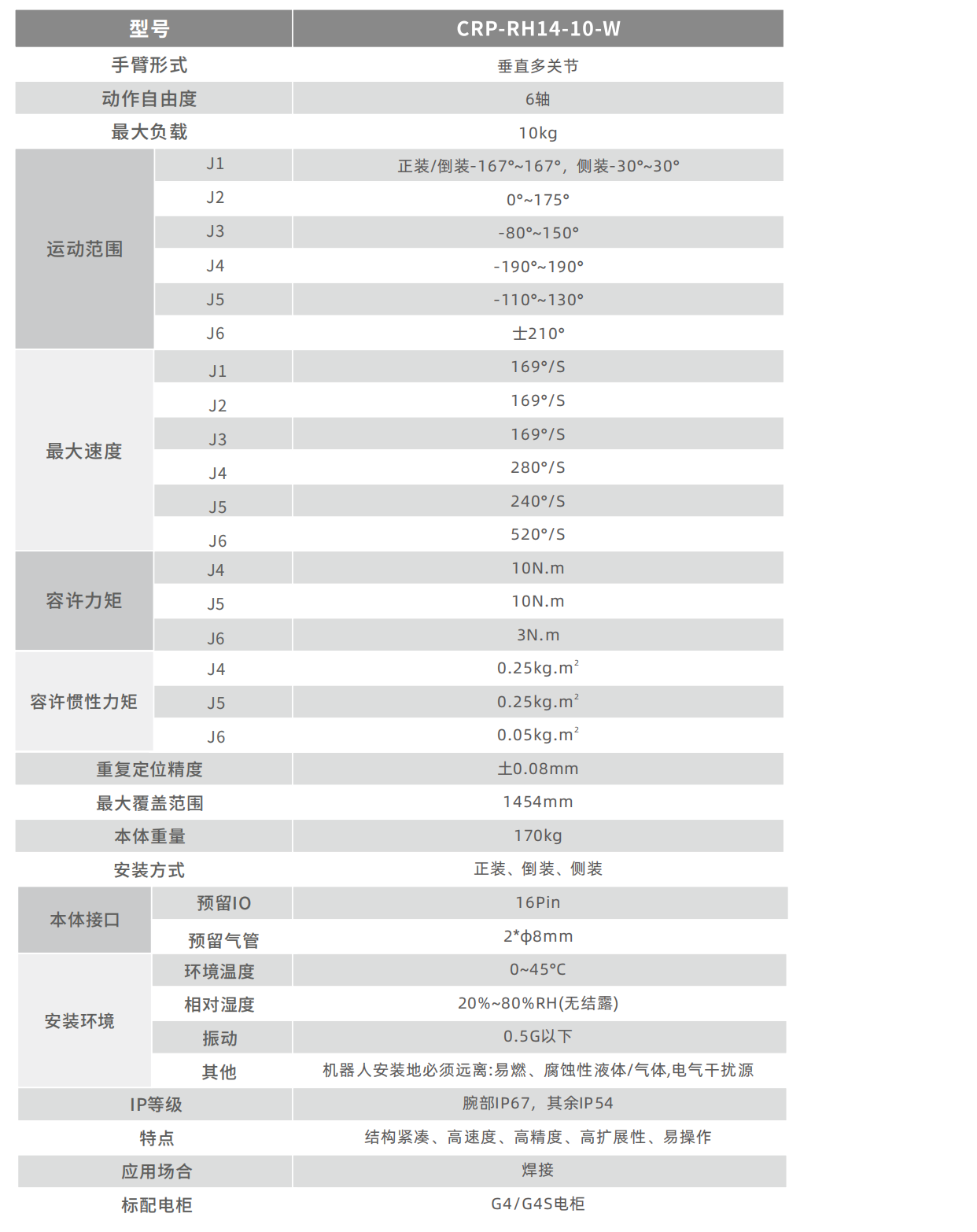 • 工作空间大、运行速度快、重复定位精度高,适用于焊接应用,适用范围广。