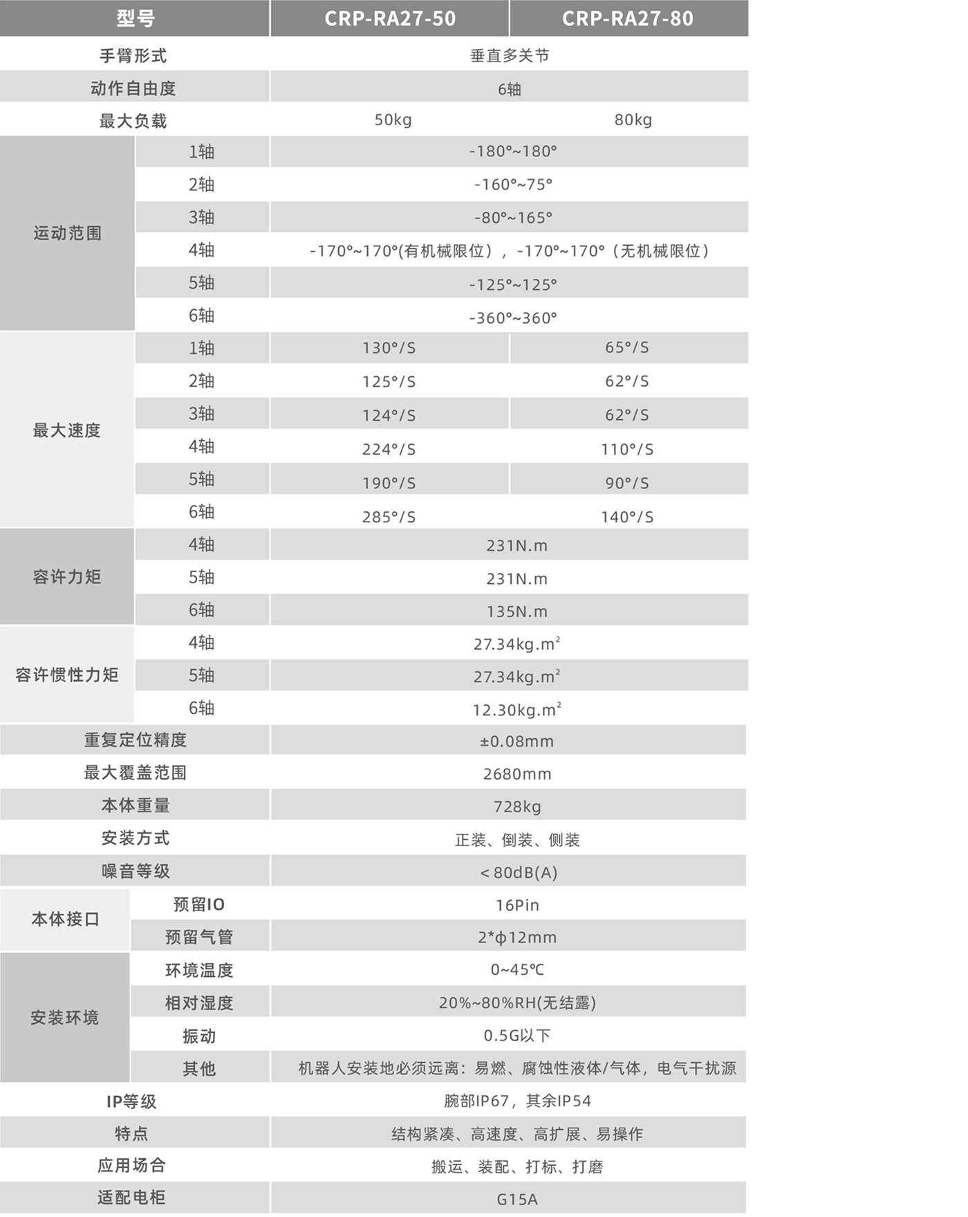 内置电缆、气管,通过小臂和手腕中心处设置中空部分,从机器人基部到腕部末端内置电缆和气管,更大地方便了用户使用,提高了作业效率。